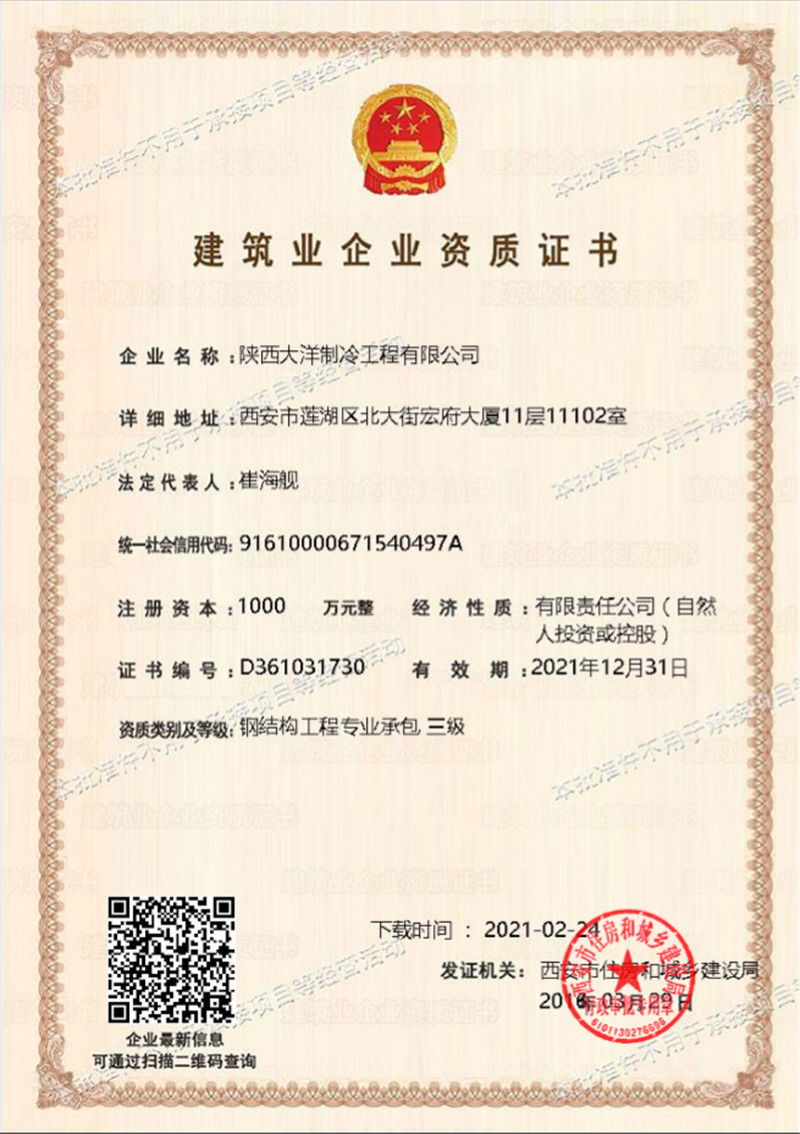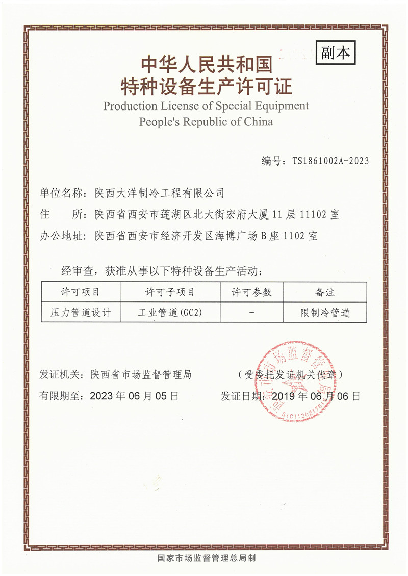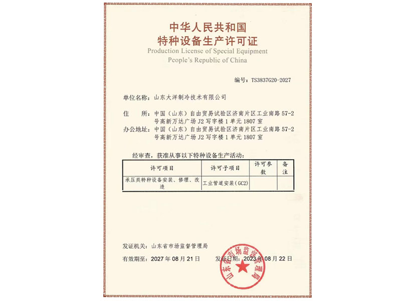 山東大洋制冷 · 資質證書